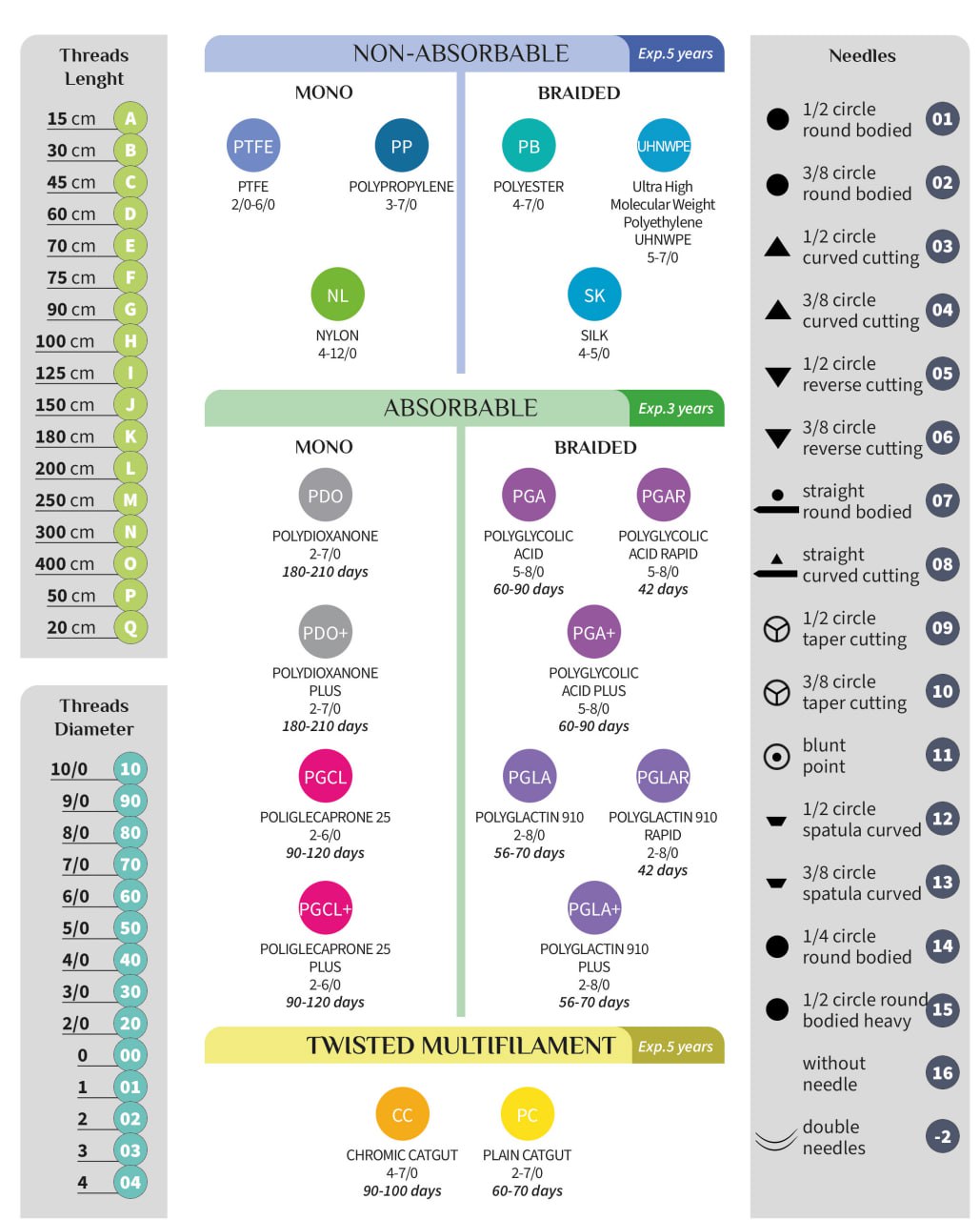 Size: (USP) 10-0、9-0、8-0、7-0、6-0、5-0、4-0、3-0、2-0、0、1、2、3